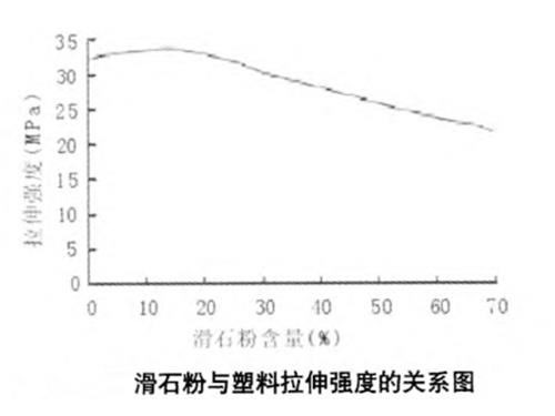 滑石粉會影響塑料的拉伸強度。根據大量文獻數據表明,滑石粉含量和塑料的拉伸強度有關,如圖所示。在圖中可以看出,當滑石粉的含量為0到15%時,隨著滑石粉的含量升高,塑料制品的拉伸強度越高。 但是當滑石粉的含量為15%到70%時,塑料制品的拉伸強度隨滑石粉的含量越高反而降低。當滑石粉的含量較小時,滑石粉起到增…