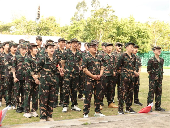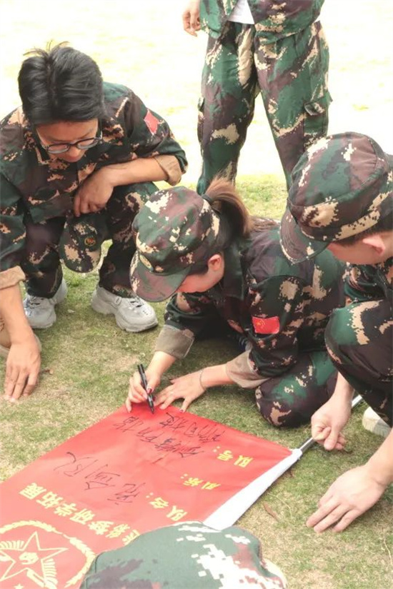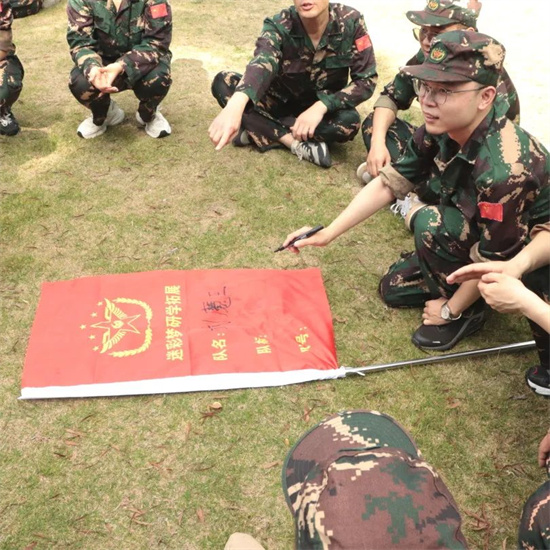 士兵突擊、火速變裝完,軍訓的感覺一下就上來了。經過簡單的桃花朵朵開環節、集合分組、起隊名、喊口號一系列操作直接讓我們從開始的拘謹變得士氣滿滿,各團隊就此組建完成。
