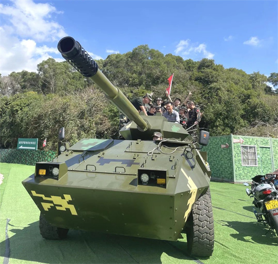 根據上午的競技排名分數,暫居第一名的“亮劍”隊獲得了獎勵--乘坐坦克前往午餐地點,威武的坦克上大家與施總一起分享活動感受,一路馳騁,一路歡聲笑語!