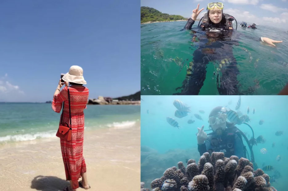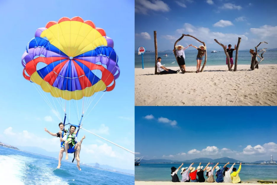 在蜈支洲島,靜可欣賞潔凈透明的海水,秀麗的風景。動可乘坐豪華游艇出海、玩轉帆船、浮潛、垂釣、背上滑翔傘,翱翔藍天。