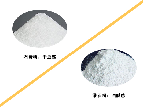 1.觸覺區別,滑石粉有油膩感,石膏粉有干澀感