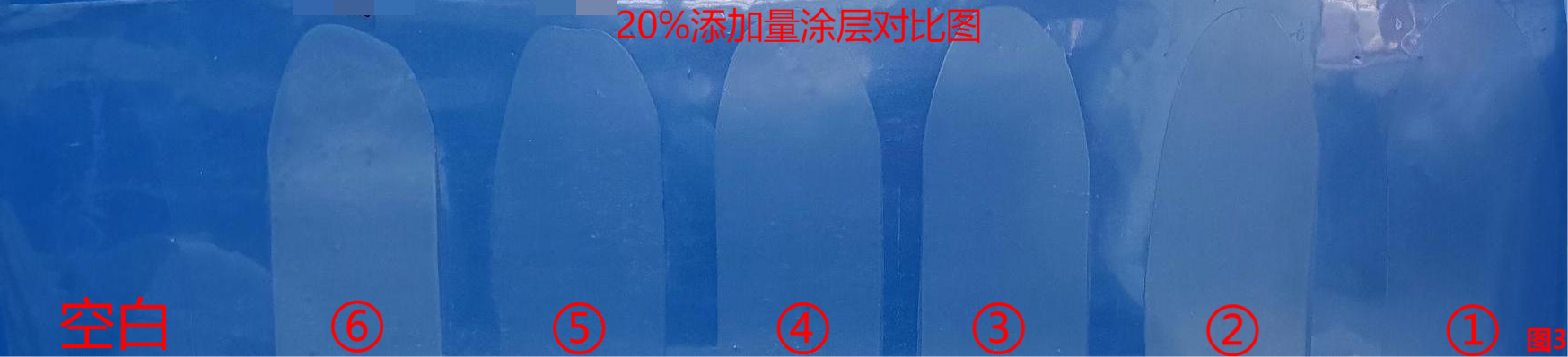 同時(shí)使用霧度儀ASTM標(biāo)準(zhǔn),測(cè)試400-700nm波長下,添加20%滑石粉涂層的霧度(濁度)和清晰度(鮮艷性)如上圖2,①滑石粉在20%添加比例下仍可以保持較好的清晰度,對(duì)涂層的濁度外觀影響較小;整體的外觀情況如下圖3。